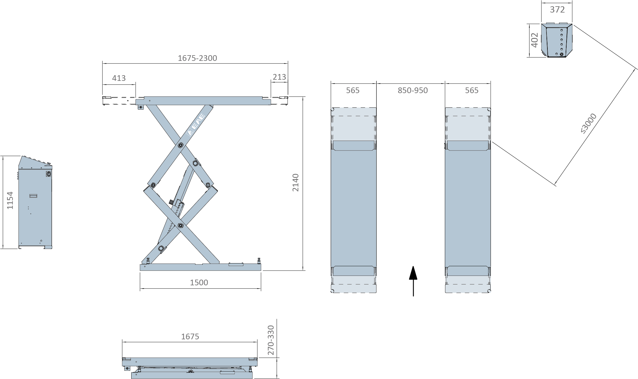 ·Platform Length, extendable from 1675 mm to 2300 mm, fits both short-wheelbasecompact cars and long-wheelbase passenger vans